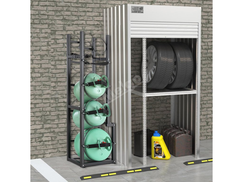 Tento třípatrový stojan na chladicí kapalinu má rozměry 395x330x1265 mm/15,55x12,99x49,8 palce. Je vyroben z odolné uhlíkové oceli a může se pochlubit silnou nosností. Díky snadné instalaci s kompletním příslušenstvím je ideální pro sklady s nádržemi nebo vozidla.
