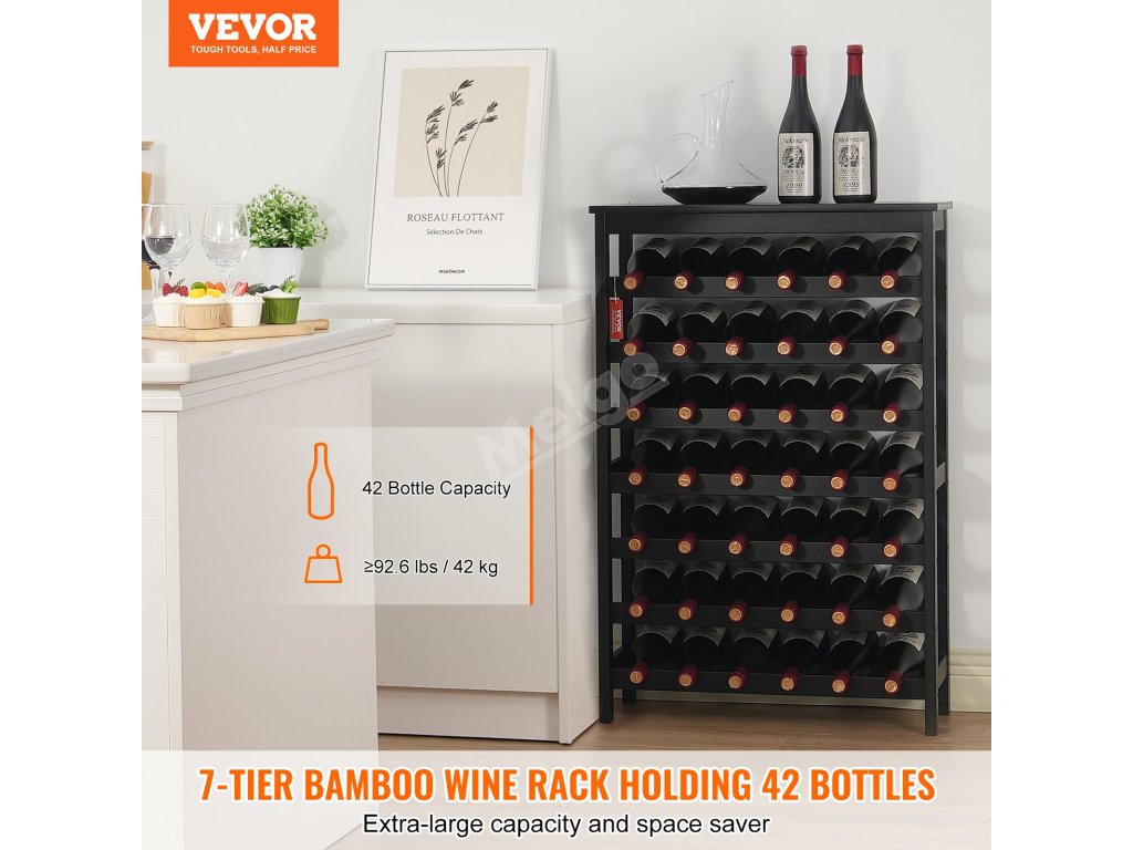 Tento stojan na víno má rozměry přibližně 26x11,4x39,4 palce (660x290x1000 mm) a pojme až 42 lahví (7 vrstev, 6 lahví na vrstvu). Jedná se o elegantní a klasický stojan na víno, který vylepší každou kuchyň, jídelnu, vinotéku nebo jídelní prostor.