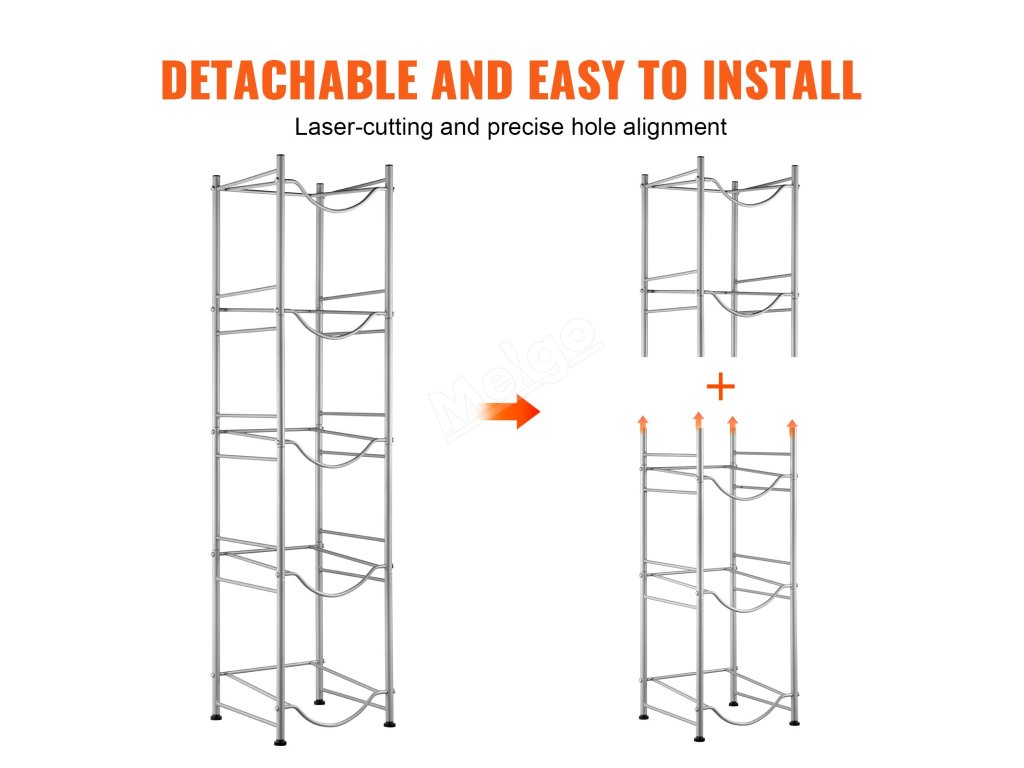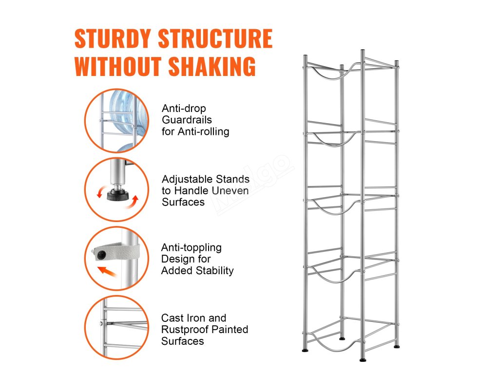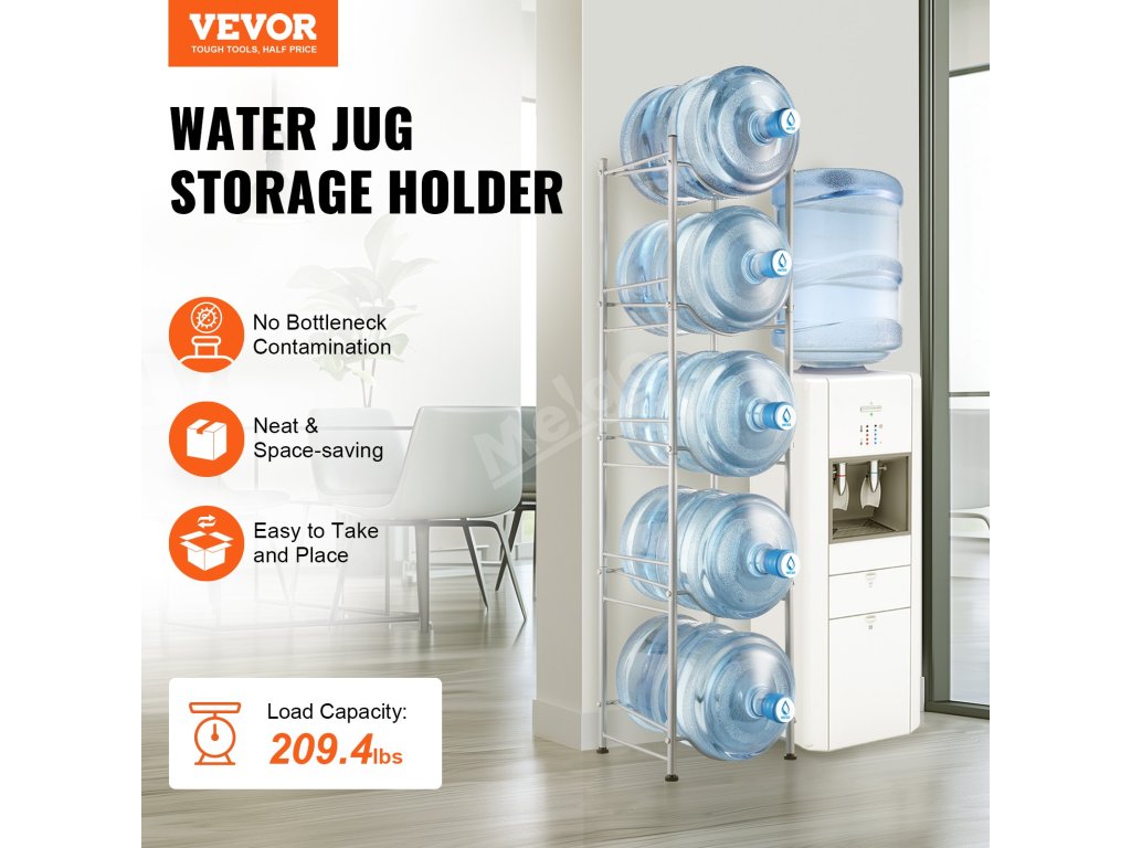 Stojan na džbány na vodu je ideální do obývacích pokojů, skladovacích prostor, kuchyní, garáží, spíží, šaten, prádelen, tělocvičen a kanceláří. Poskytuje efektivní řešení pro uložení více lahví.