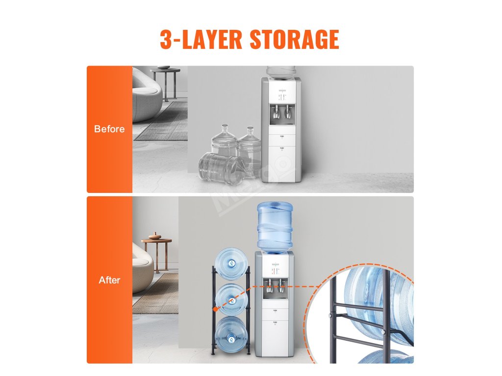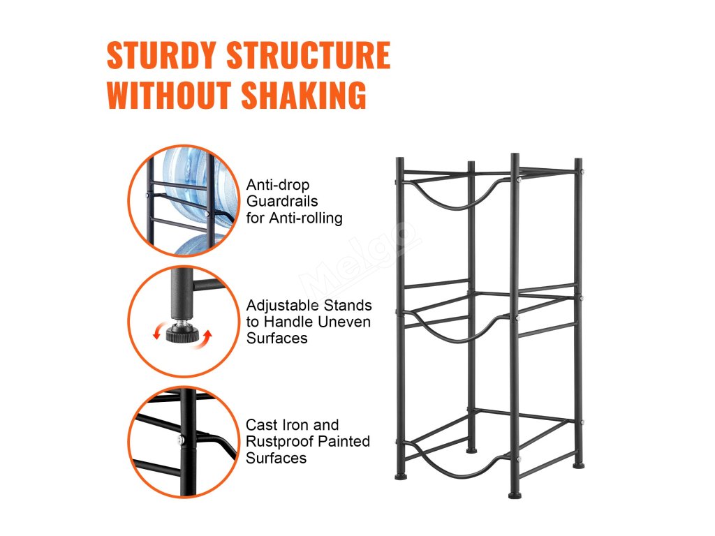 Stojan na vodní kanystry 3 patra, na 3 láhve 5 gallon, černý