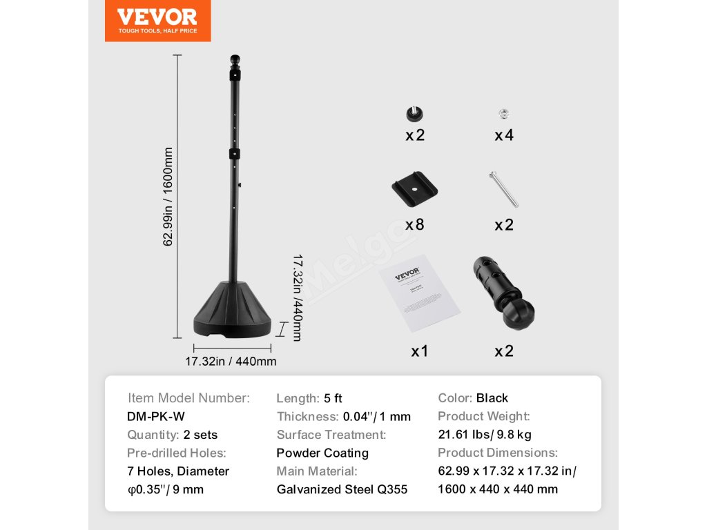 Tento přenosný sloupek je vyroben z vysoce pevné pozinkované oceli, která zajišťuje vysokou pevnost a odolnost. Je odolný proti korozi a rzi, takže je odolný proti opotřebení i při dlouhodobém používání.
