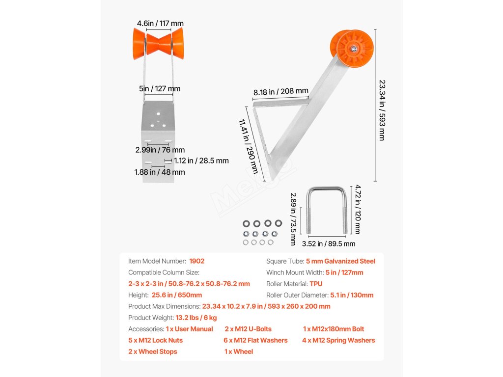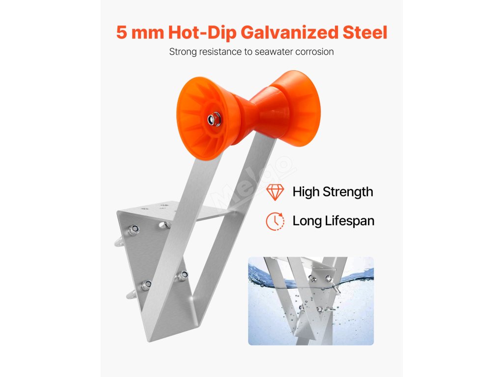 Tento stojan na lodní naviják, vyrobený z korozivzdorné pozinkované oceli, je vhodný pro 2-3palcové sloupky navijáků. Je vybaven válečky z PVC proti poškrábání, které zajišťují stabilní držení a poskytují trvalou odolnost a vynikající ochranu.