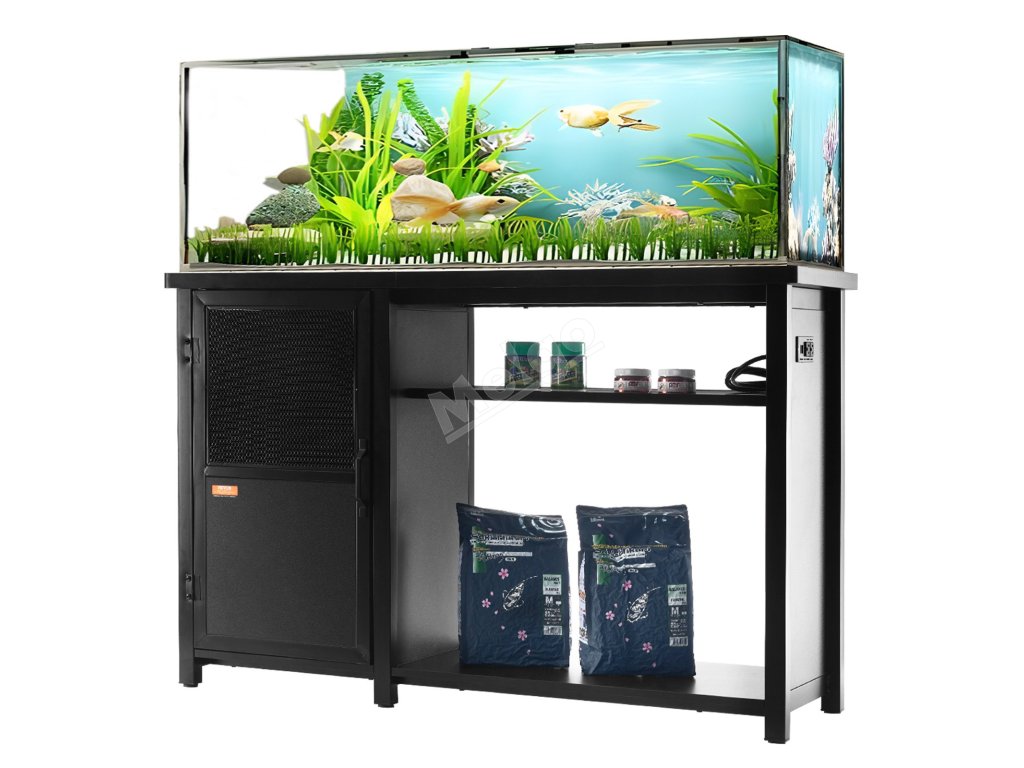 Do horního rámu akvarijního stojanu lze umístit velké akvárium, zatímco do spodního rámu lze umístit druhé menší akvárium. Kromě toho je zde boční uzavřená přihrádka a prostřední otevřená úložná vrstva pro uložení různého příslušenství a dalších předmětů.