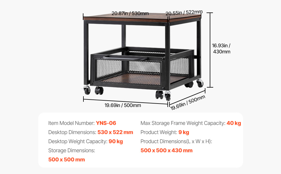 Tento mini chladicí regál s úložným prostorem má odolný kovový rám a dřevo třídy E1, které unese až 90 kg nahoře a 40 kg v zásuvkách. Díky kolečkům otočným o 360° s aretací se tento mini chladicí regál snadno přemisťuje. Spodní vozík poskytuje další úložný prostor pro potraviny, oblečení a další předměty.