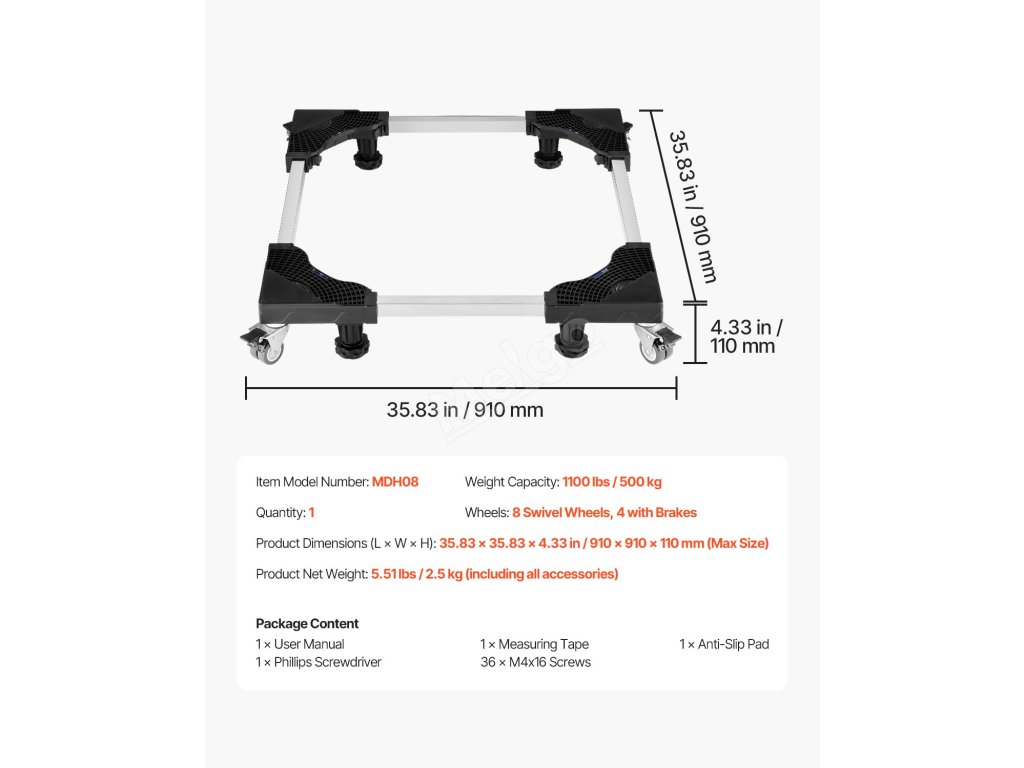 Stojan pod spotřebiče 1100 lbs, 27.5–35.4 inches, 8 koleček, 4 brzdy