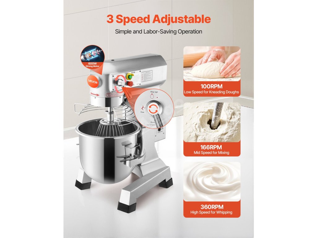 Vysoce výkonný 1100W motor zajišťuje stabilní provoz a nabízí tři nastavitelné rychlosti mixování (105 ot./min/180 ot./min/408 ot./min), které vám pomohou efektivně mixovat potraviny.