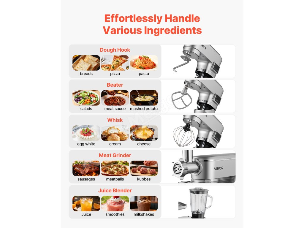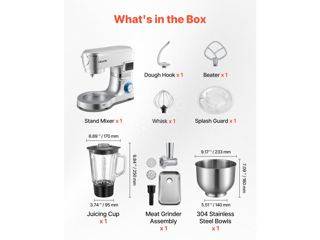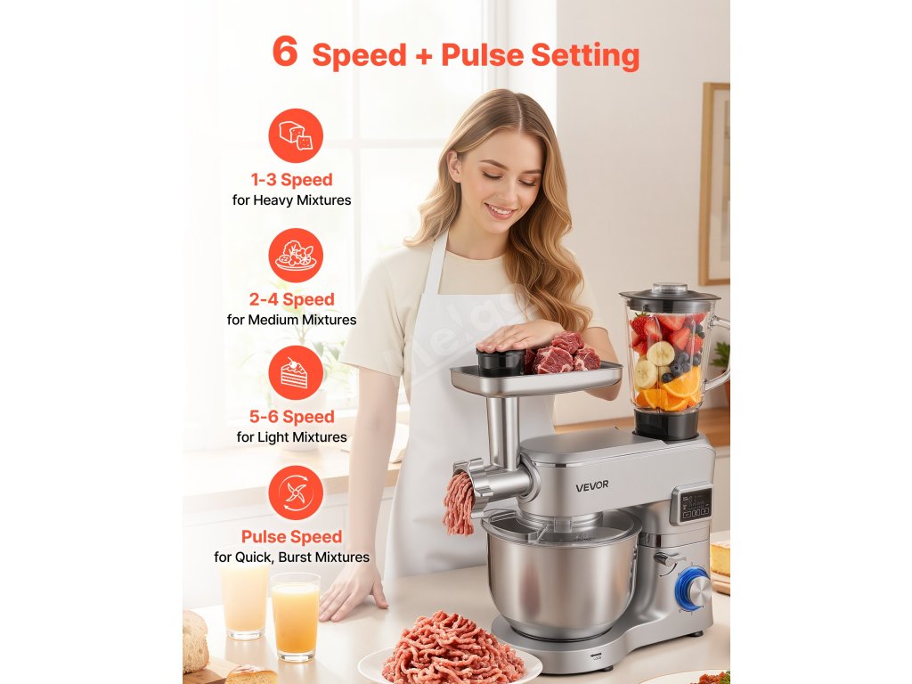Stojanový mixér 5.7 L, 1500W, 6+P rychlostí, 1.5 L mixér nerezová mísa