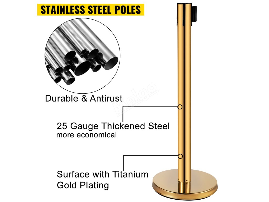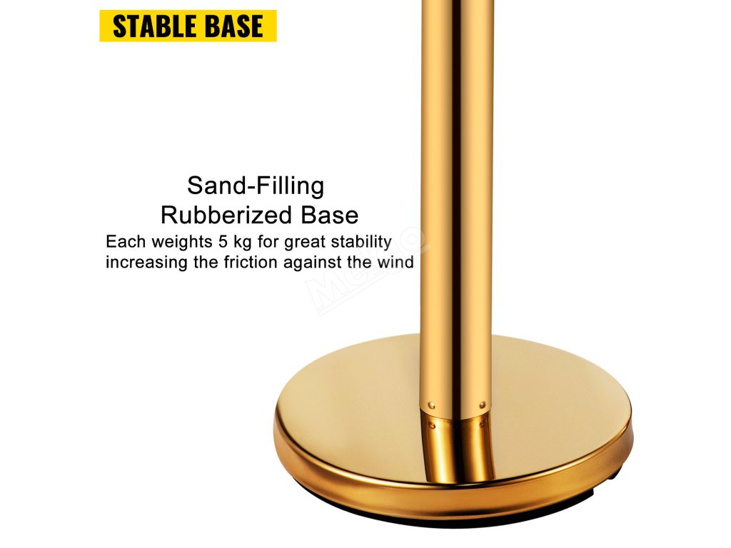Gumové chrániče podlahy mohou zabránit poškrábání podlahy a zvýšit tření mezi tyčí a podlahou. Navíc 5 kg základna s pískovou výplní zajišťuje větší stabilitu sloupku stojanu.