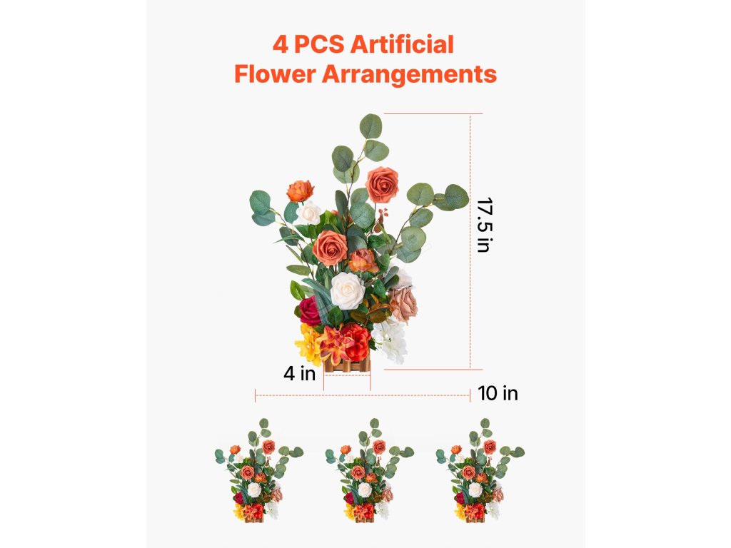 Stojící umělá květinová aranžmá 4 ks, výška 450 mm, oranžová
