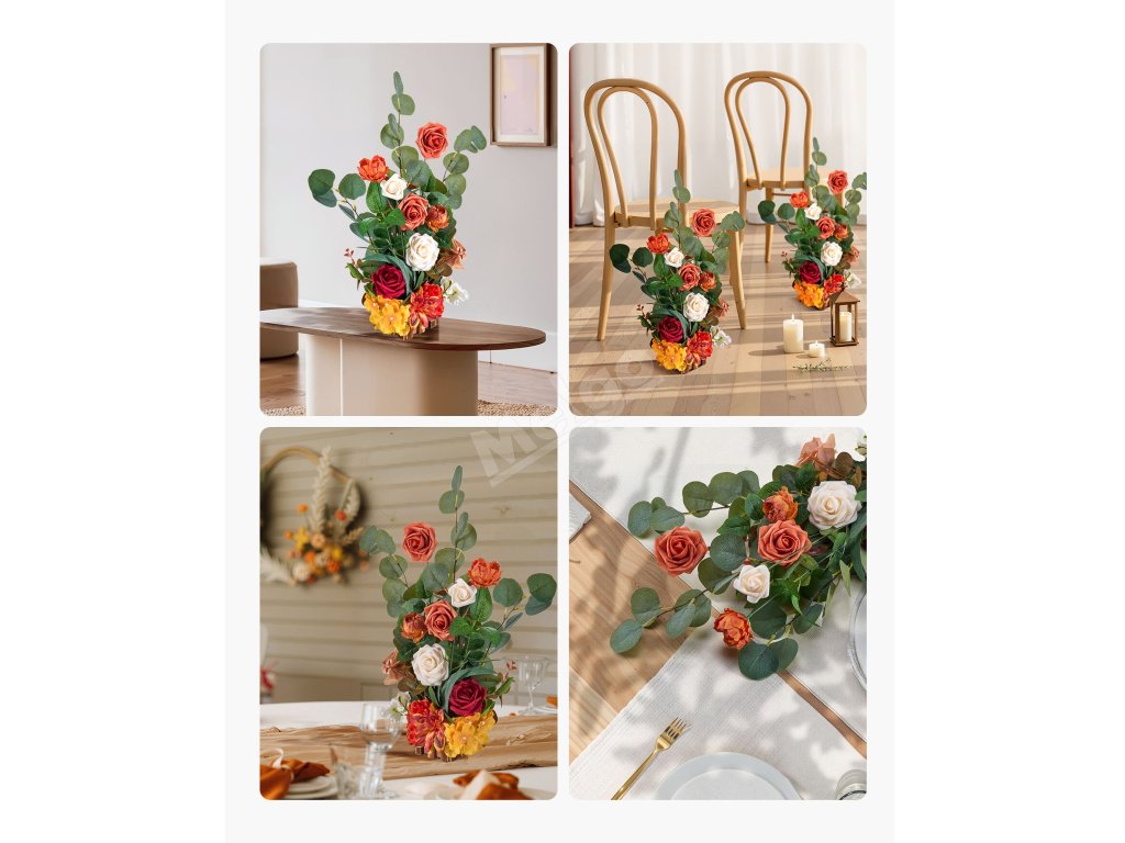 O 3: Každá kytice je ručně vyrobena z vysoce kvalitních hedvábných látek, které jsou pevně zajištěny, aby se neodlupovaly. Lze je použít v interiéru i exteriéru.