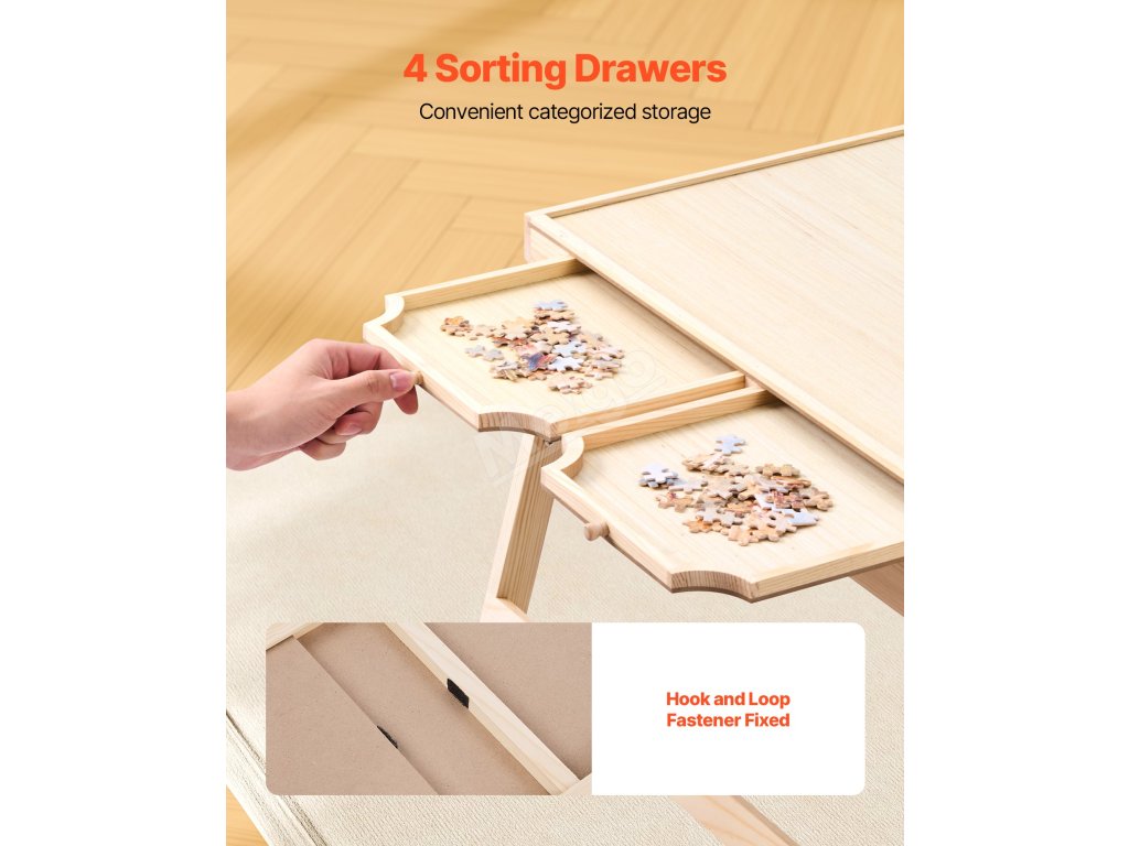 Stolek na skládačky 86×63 cm, skládací se 4 zásuvkami a krytem