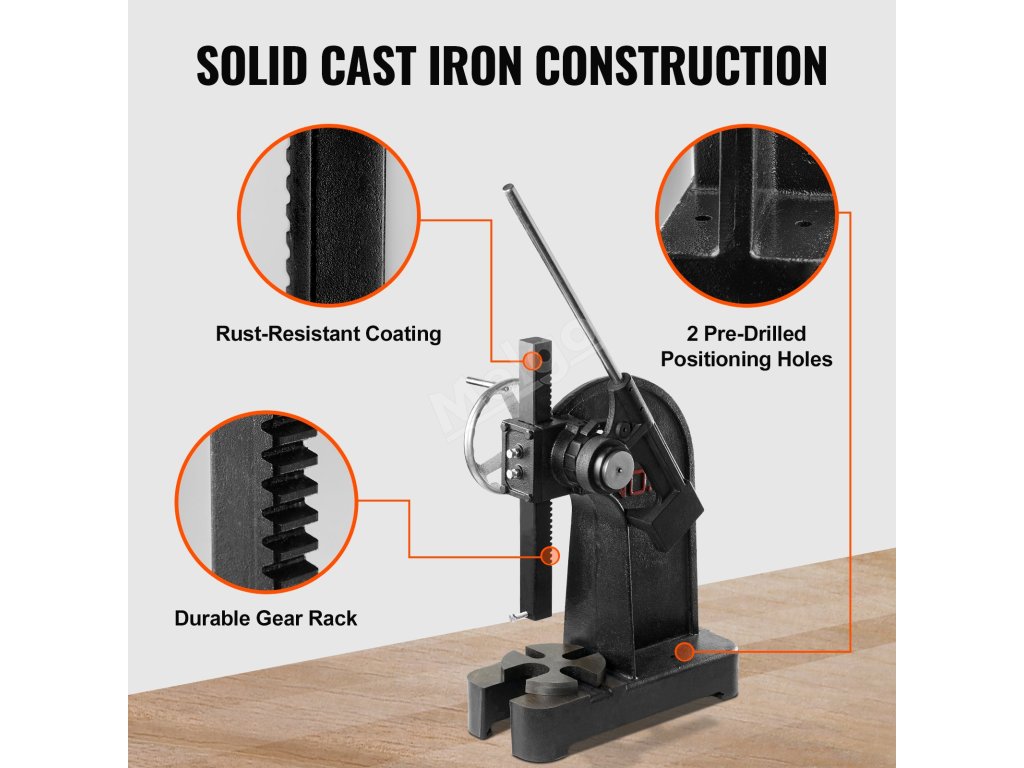 Tento ráčnový pákový lis vám pomůže při lisování malých kovových dílů, ložisek, těsnění, lisování pouzder, výměně U-kloubů v automobilech a dalších aplikacích, jako je nýtování, lisování, děrování, ohýbání. Díky přizpůsobení různých forem můžete zdokonalit svou vysoce sofistikovanou práci.