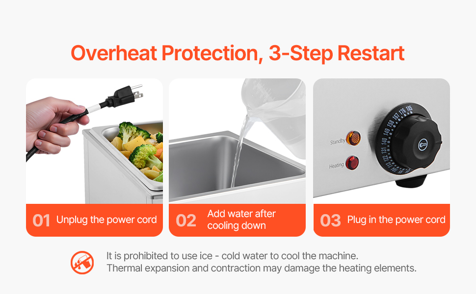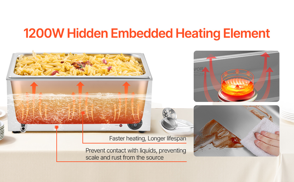 Tento ohřívač potravin z nerezové oceli s 1 pánví má konstrukci odolnou proti spálení za sucha a systém resetování, který chrání před poškozením. Teplotní rozsah 86 - 185℉ / 30 - 85 ℃ umožňuje zvolit ideální nastavení, aby bylo jídlo kdykoli horké a připravené k servírování.