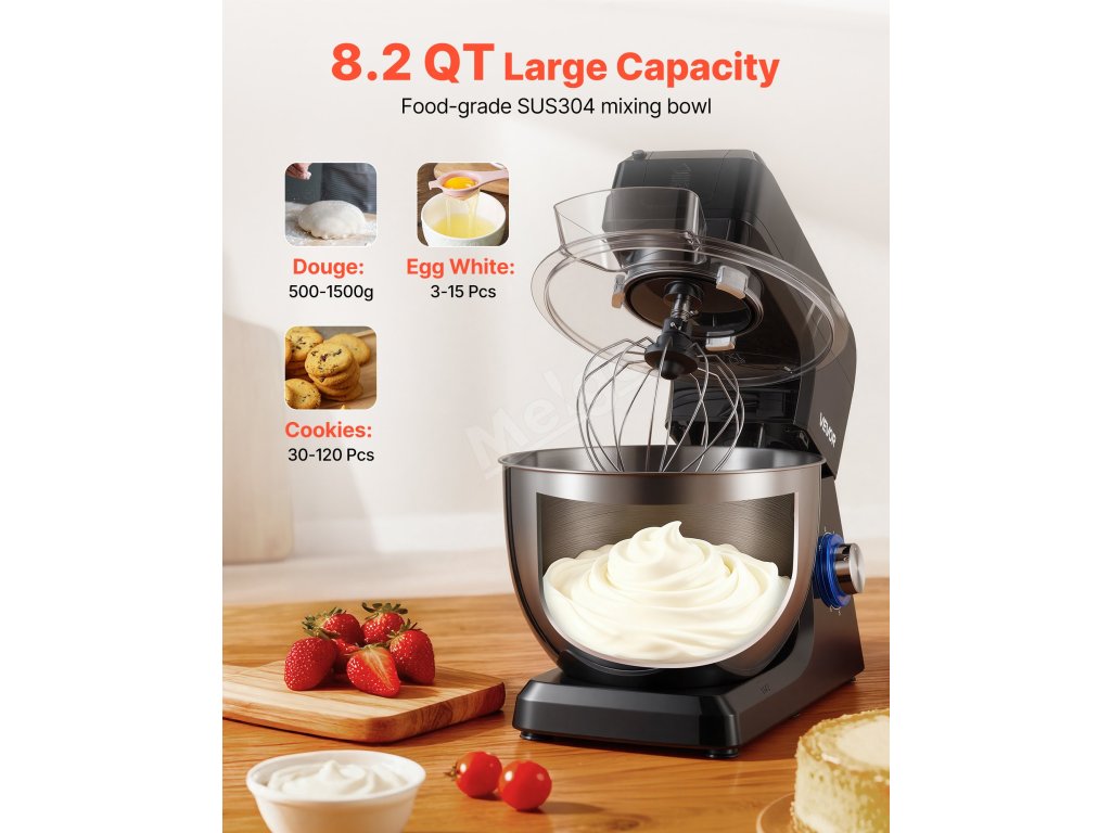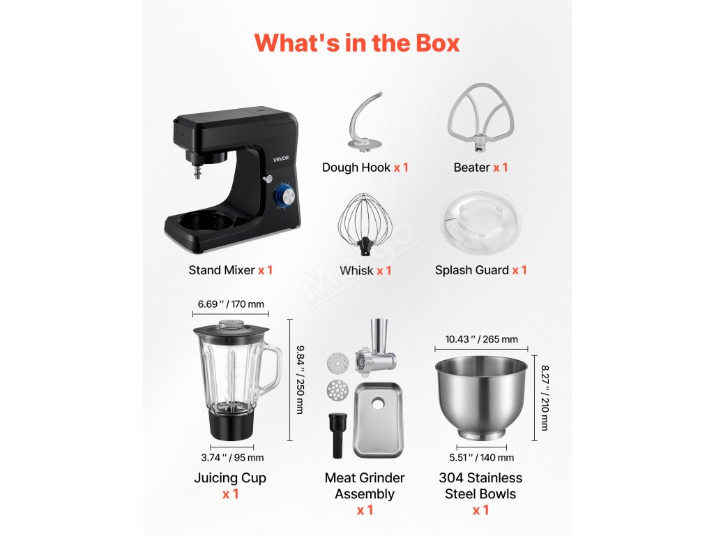 | Kapacita | 8.misa z nehrdzavejúcej ocele s objemom 2 qt/7,8 l, mixovacia nádoba s objemom 1,6 qt/1,5 l |