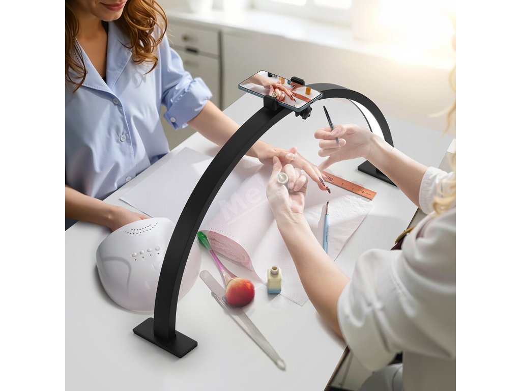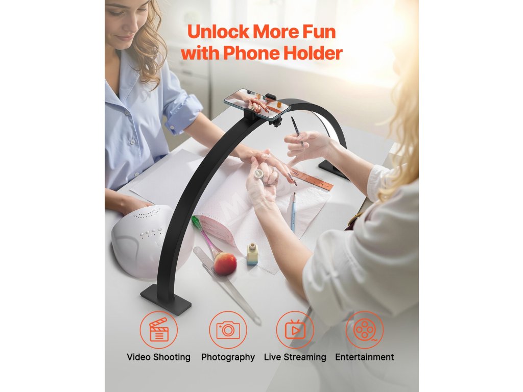 Naše půlměsíční lampa se dodává s držákem na telefon. Na stojan můžete jednoduše položit mobilní telefon a sledovat instruktážní videa nebo si pustit uklidňující hudbu.