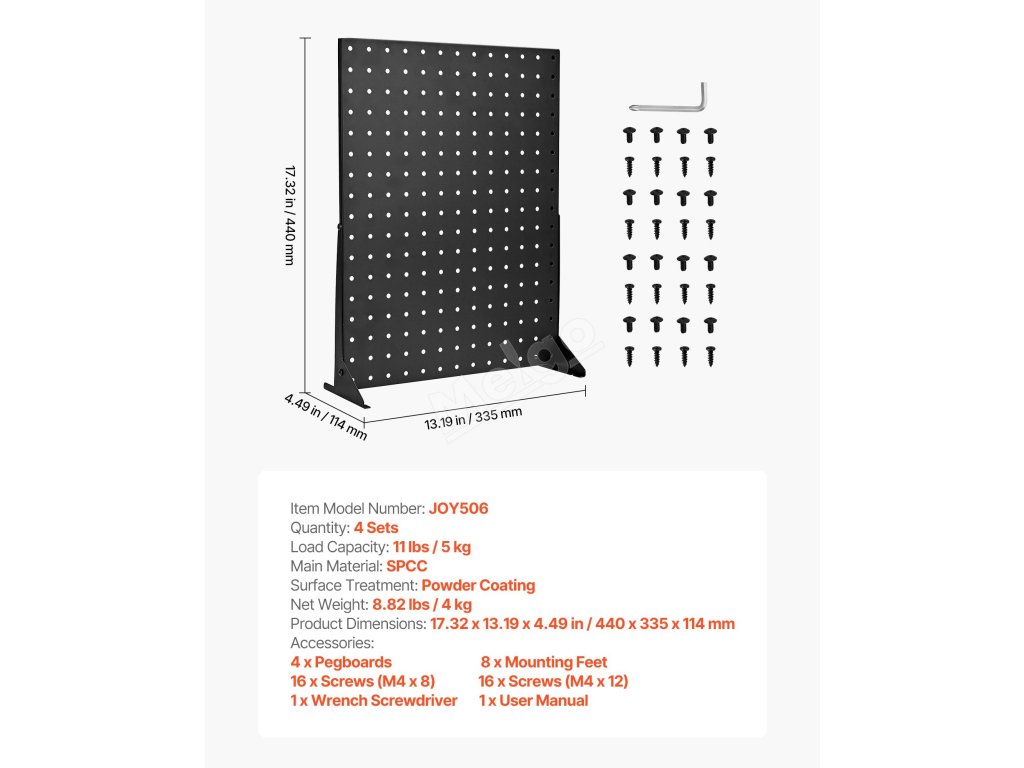 Stolní pegboard stojan na příslušenství 43×33 cm, ocel, 4 ks, černý