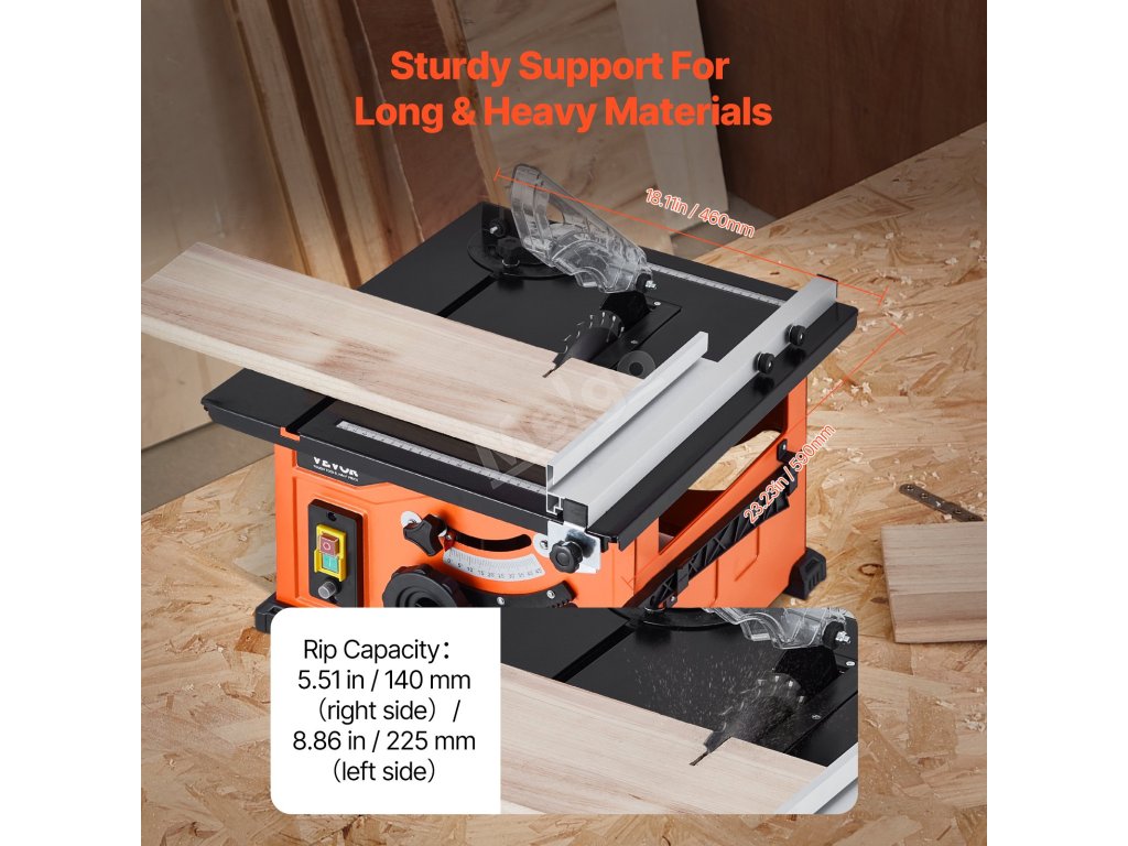 Naše stolní pila je vybavena robustním 1200W motorem a dosahuje řezné rychlosti 4800 otáček za minutu, takže si snadno poradí s různými druhy dřeva. Díky maximálnímu řeznému výkonu 225 mm si bez námahy poradí s většími kusy dřeva a dalšími materiály, takže je ideální jak pro profesionální truhláře, tak pro kutily.