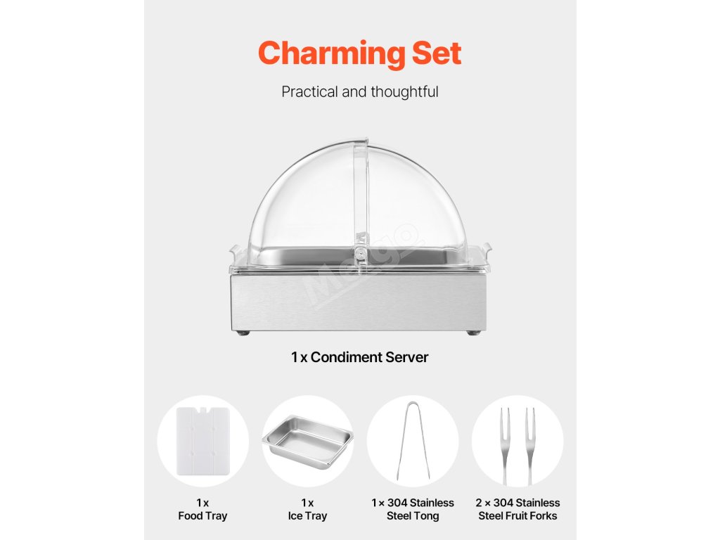 Náš bufetový zásobník na studené potraviny je vhodný pro různá prostředí včetně kuchyní, restaurací, hotelů a bufetů, kde efektivně uchová různé potraviny a koření a zároveň dodá vašemu prostoru eleganci.