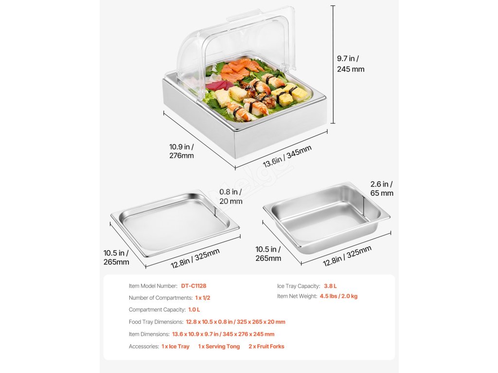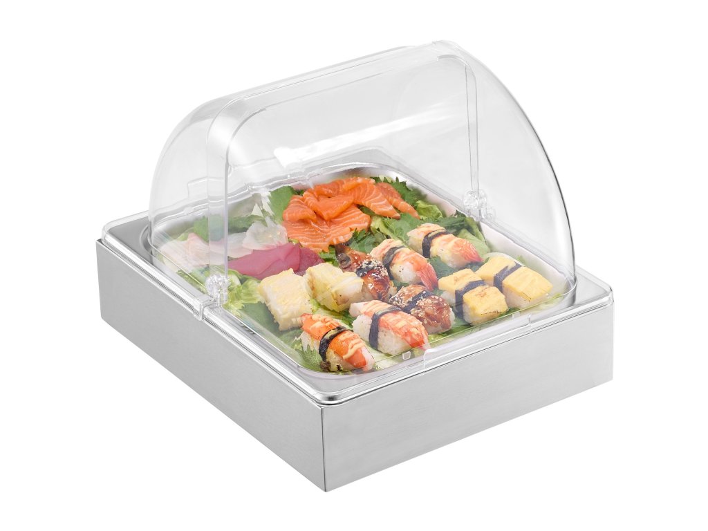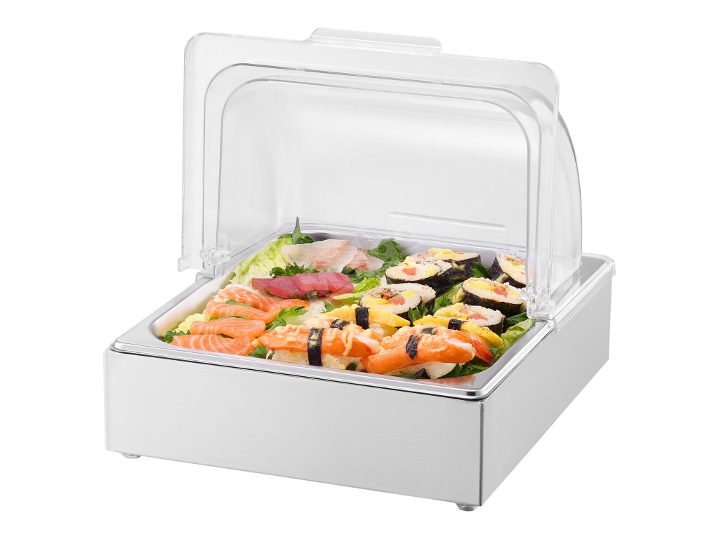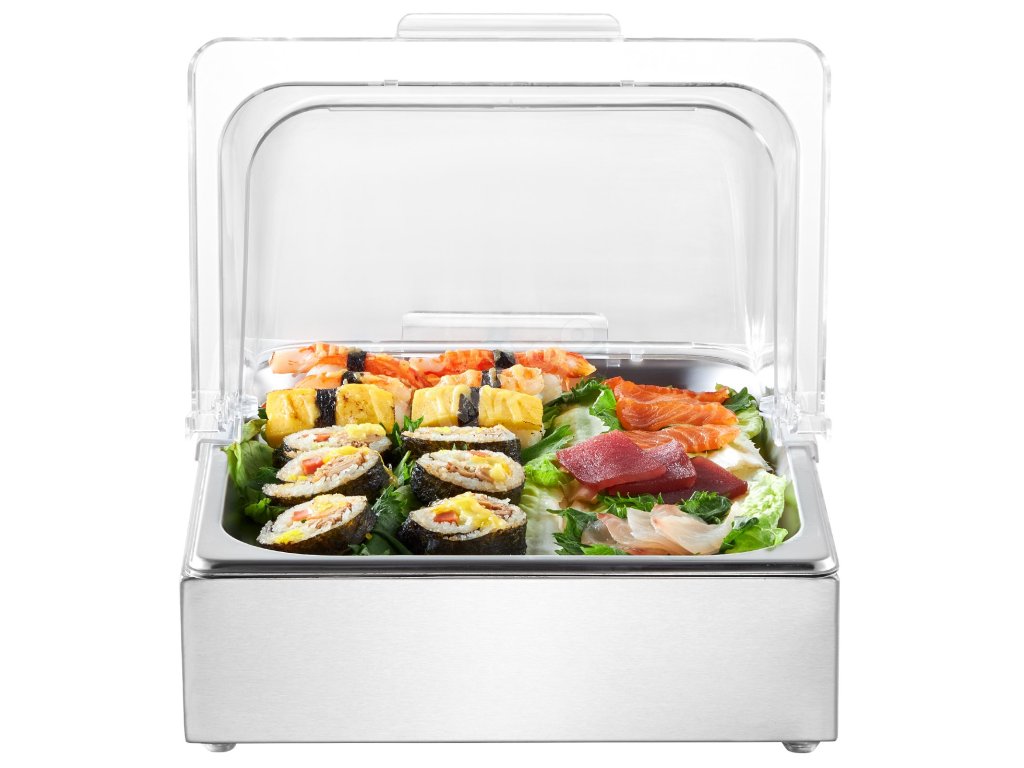 Stolní podavač nerez 1×1/2 pan, průhledné víko, tácek na led