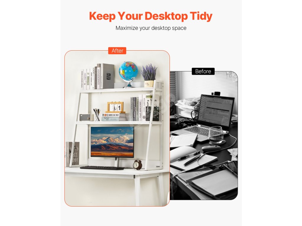 Tato policová lišta na stůl je vybavena několika přihrádkami pro uspořádání knih, kancelářských potřeb a dalších věcí a pomáhá vytvořit uklizený pracovní prostor a zvýšit produktivitu.