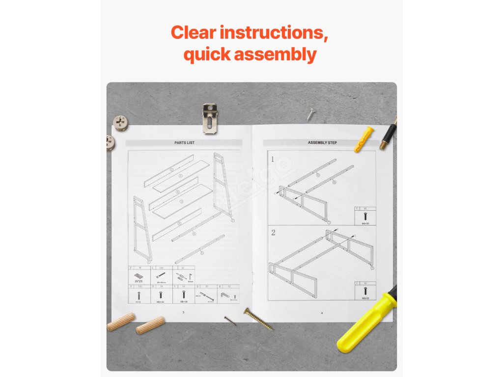 Podrobný návod k montáži najdete v návodu k použití, který vám umožní tento stolní regál snadno a rychle sestavit.