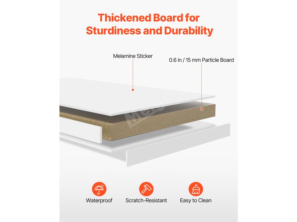 Robustní a odolná stolní knihovna je vyrobena z 0,6 palce silné dřevotřísky, která je hladká, odolná proti vodě, poškrábání a snadno se čistí - nabízí pevnou základnu pro všechny vaše knihy.