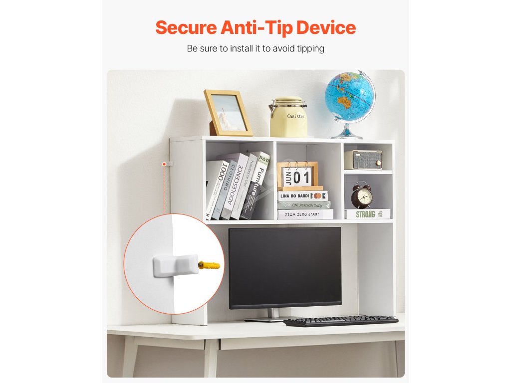 Rozlučte se s nepořádkem s naší stolní knihovnou. Police o tloušťce 0,6" unese až 143 liber/65 kg, takže je ideální pro knihy, fotografie, sluchátka a dekorace. Můžete v ní uspořádat kancelářské složky, knihy a další věci doma nebo v práci.
