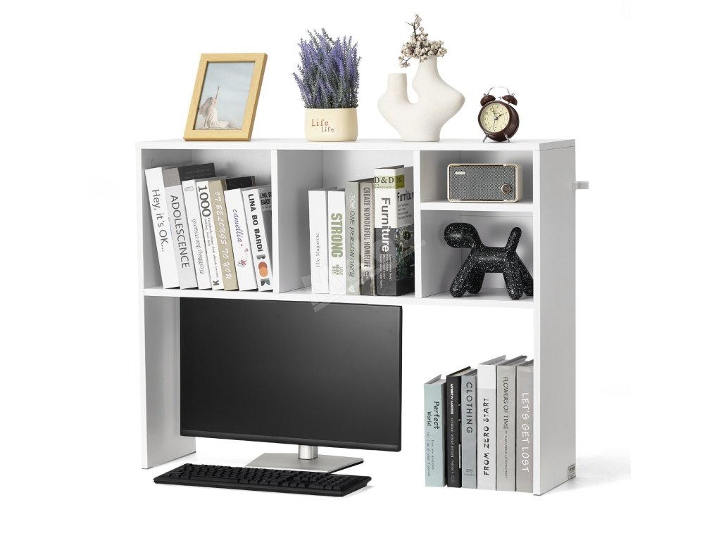 Tato policová lišta na stůl je vybavena několika přihrádkami pro uspořádání knih, kancelářských potřeb a dalších věcí a pomáhá vytvořit uklizený pracovní prostor a zvýšit produktivitu.