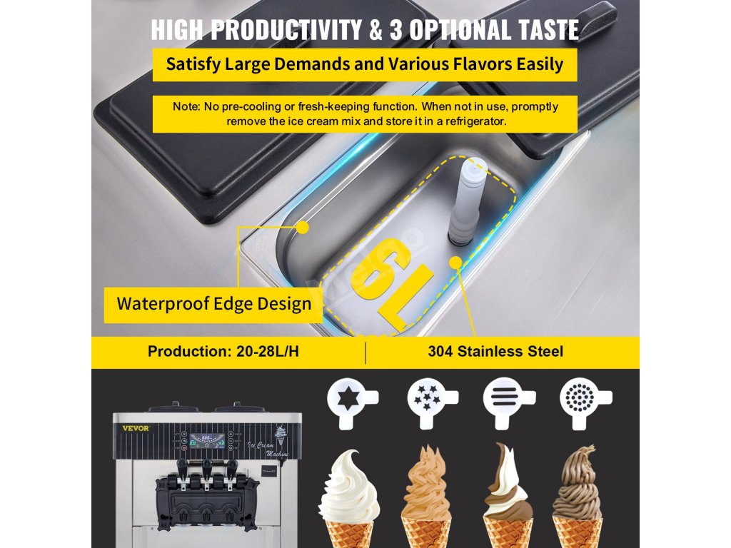 Tento výrobník měkké zmrzliny má široké uplatnění v restauracích, kavárnách, rychlém občerstvení, supermarketech a dalších místech s velkými potřebami. Bez triviálních kroků lze v krátkém čase vyrobit měkkou zmrzlinu, jogurt nebo sorbet.