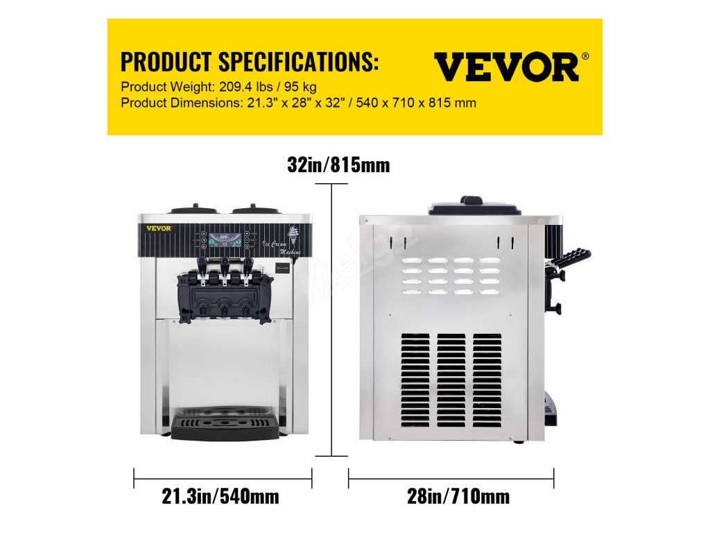 Stolní stroj na točenou zmrzlinu 2200W, 5.3–7.4 galonů za hodinu