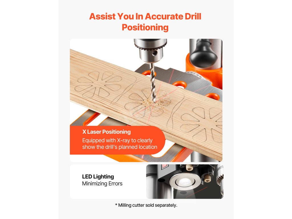Díky polohování laserem X snižuje naše stolní vrtačka počet chyb při vrtání a plýtvání materiálem.