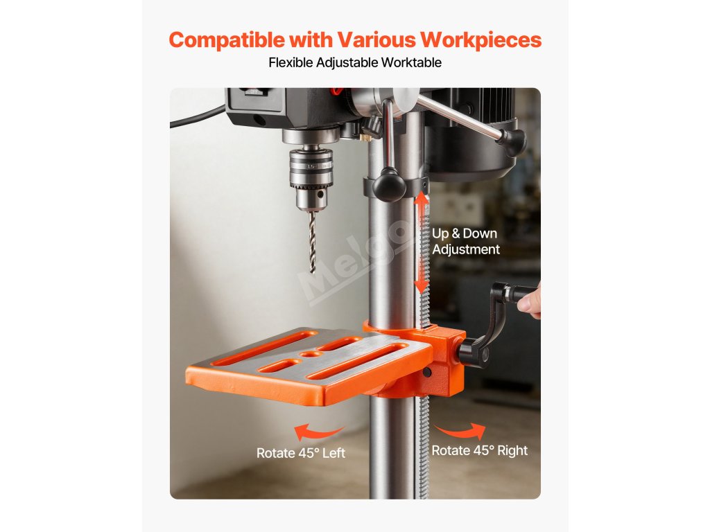 Naše stolní vrtačka je vybavena vestavěným osvětlením LED, které zajišťuje dobrou viditelnost i v pracovních prostorech se slabým osvětlením, což vám pomůže plynule pracovat a omezit počet chyb.