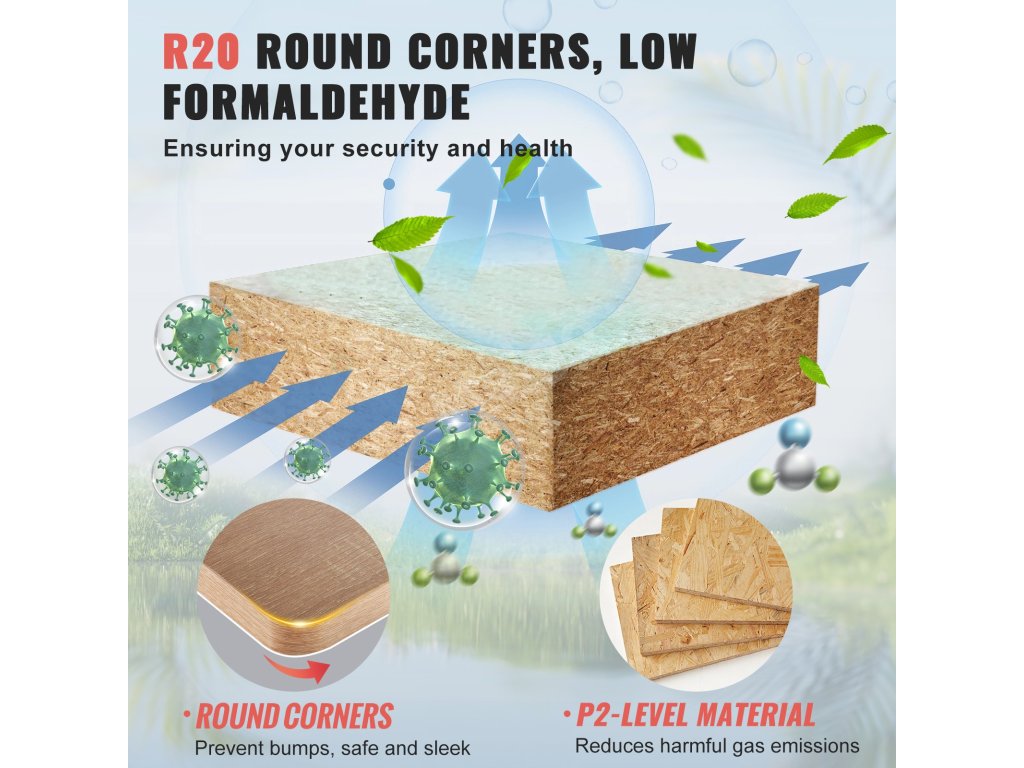 Bezpečnost a krása se snoubí se zaoblenými rohy našich pracovních desek, které snižují riziko nárazů a otlaků. Je vyrobena z materiálu třídy P2, který zajišťuje zdravější prostředí pro uživatele.