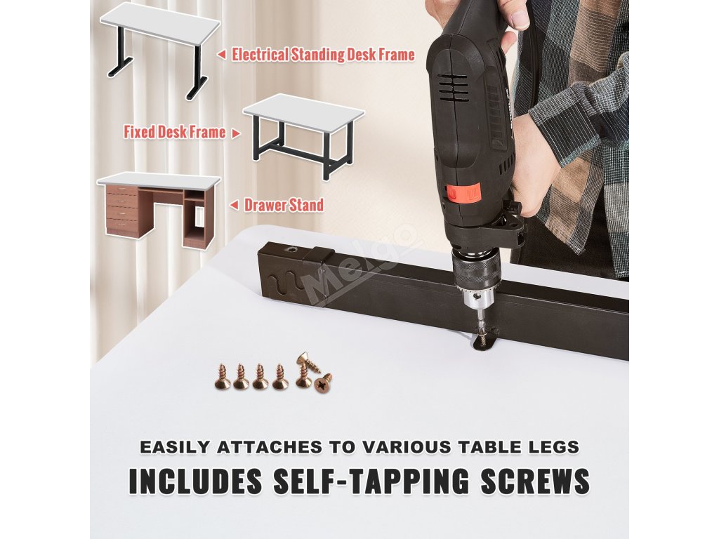 Instalace je díky samořezným šroubům snadná. Stačí připevnit pracovní desku k vybraným nohám stolu. Má všestranné využití, může sloužit jako truhlářský stůl, opravárenský stůl, kancelářský stůl, jídelní stůl, recepční stůl apod.