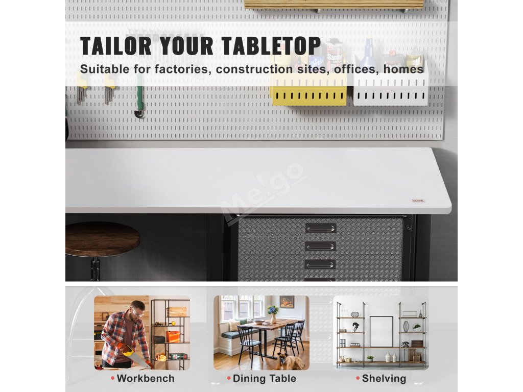 Naše prostorná pracovní deska pojme všechny druhy nástrojů, nářadí a materiálů, které vyhovují nejrůznějším potřebám. Je ideální pro práci se dřevem, opravy nebo i pro kancelářské a domácí použití.