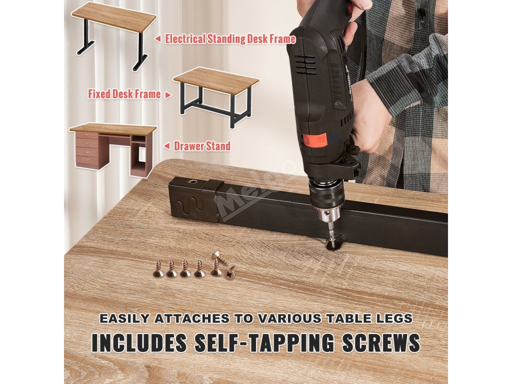 Instalace je díky samořezným šroubům snadná. Stačí připevnit pracovní desku k vybraným nohám stolu. Má všestranné využití, může sloužit jako truhlářský stůl, opravárenský stůl, kancelářský stůl, jídelní stůl, recepční stůl apod.