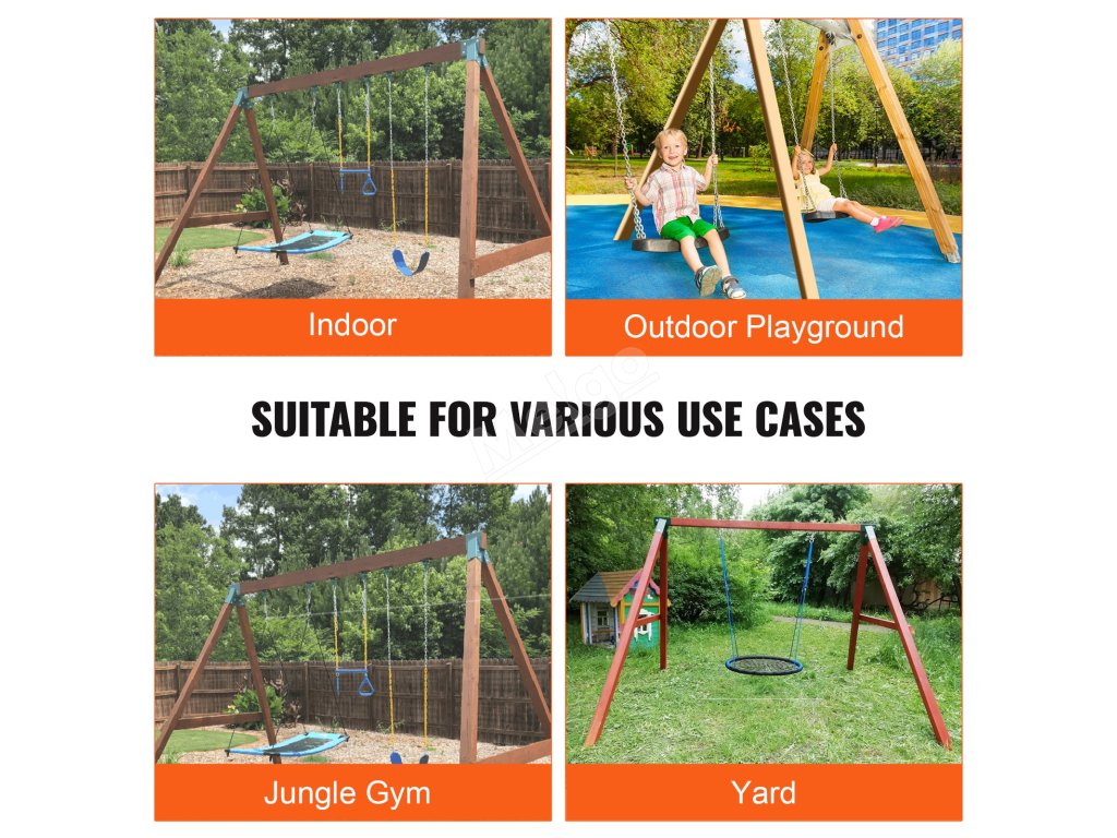 Trojúhelníkový rám houpačky ve tvaru písmene A poskytuje stabilní oporu a zajišťuje bezpečnost dětí při hře.