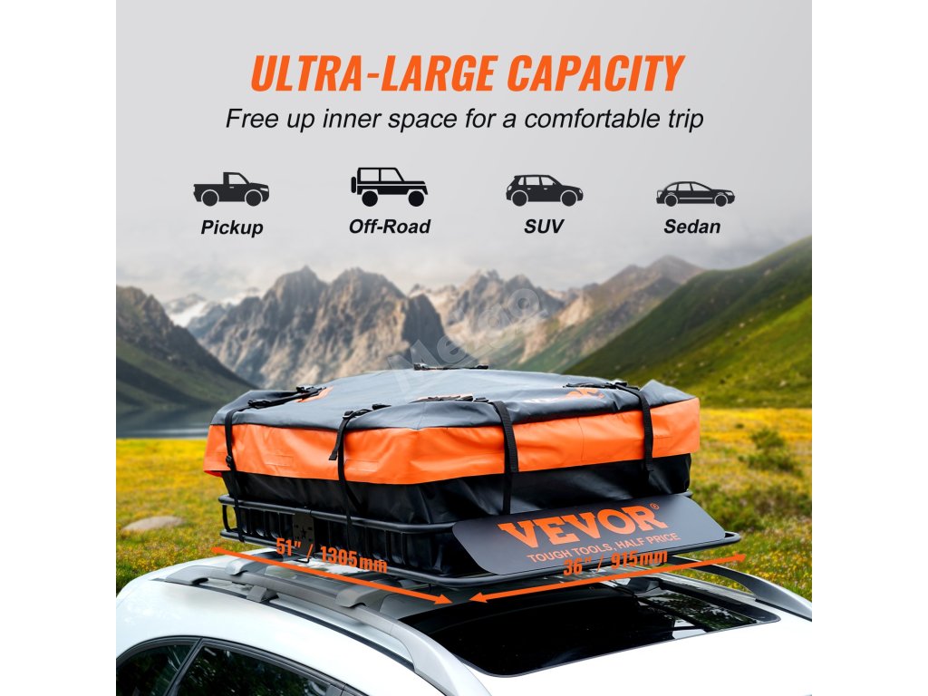 Košík na náklad zo strešného nosiča VEVOR je vyrobený tak, aby bol univerzálny a hodil sa na širokú škálu vozidiel. Môžete si ho prispôsobiť tak, aby vyhovoval rôznym modelom vozidiel. Ak nepotrebujete dodatočnú dĺžku, odstráňte stredový diel. Vďaka tejto flexibilite je vhodný pre širokú škálu vozidiel SUV a nákladných vozidiel. Rozmery koša 51x36x5 palcov poskytujú dostatok priestoru pre vaše veci. Tento kôš dokáže splniť vaše potreby bez ohľadu na to, či máte vozidlo SUV alebo väčšie nákladné vozidlo. Nastaviteľná konštrukcia zaručuje, že všetko dokonale zapadne do vášho vozidla.