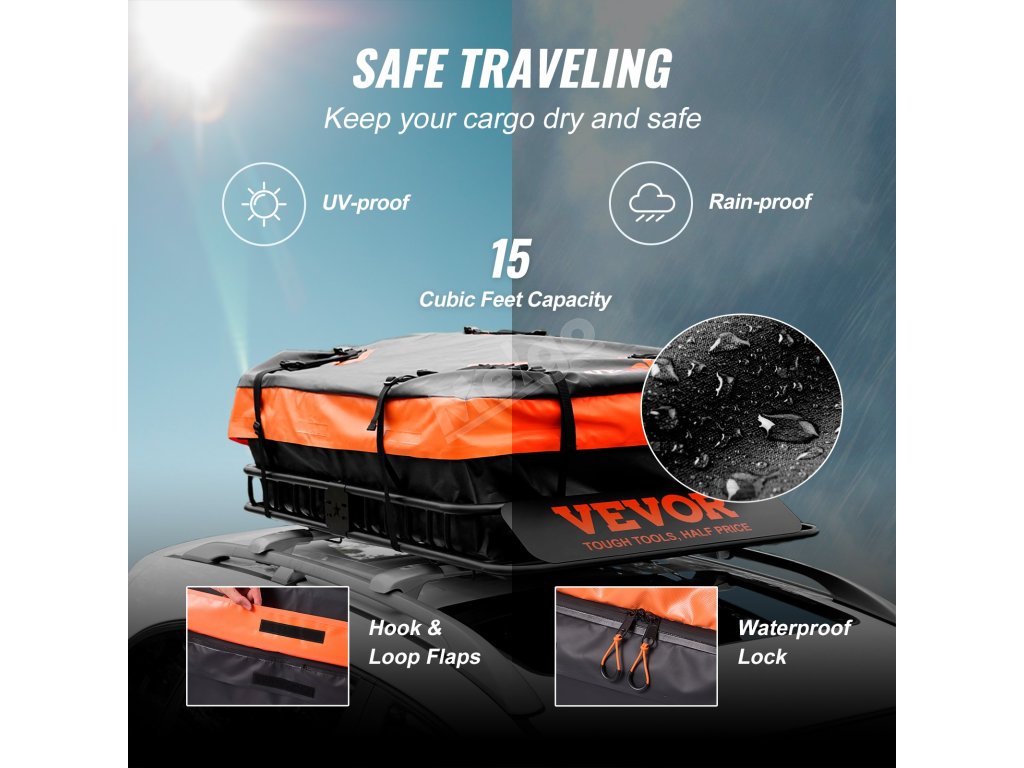 Košík na náklad na strešný nosič VEVOR je odolný voči poveternostným vplyvom, dokáže odolať dažďu, slnku a iným nepriaznivým podmienkam. Táto kombinácia nástreku a pozinkovania poskytuje vynikajúcu ochranu, takže kôš zostane v dobrej kondícii po dlhú dobu. Či už jazdíte v silnom daždi alebo pod páliacim slnkom, váš náklad bude v bezpečí vďaka spoľahlivosti koša v rôznych podmienkach, čo z neho robí spoľahlivú voľbu pre všetky vaše cestovné potreby.