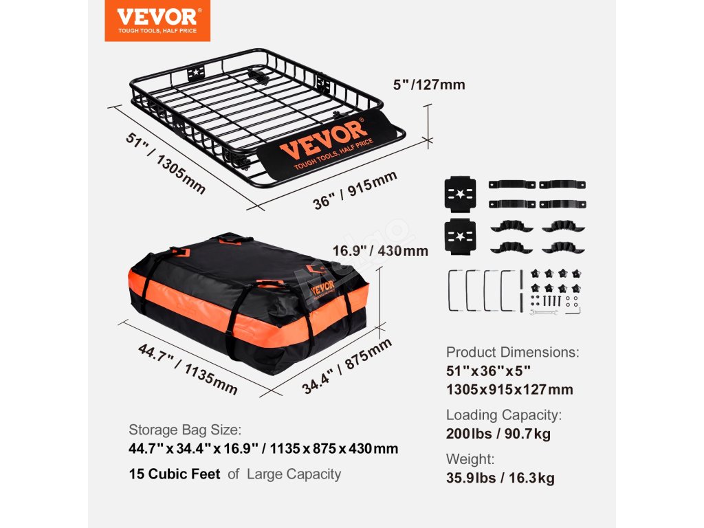 Okrem funkčnosti dodáva kôš na náklad na strešný nosič VEVOR vášmu vozidlu aj estetický vzhľad. Jeho pevná konštrukcia a elegantný dizajn dopĺňajú vzhľad vášho SUV alebo nákladného vozidla. Kôš je skonštruovaný z pevných oceľových rúrok, ktoré zaručujú odolnosť. Voliteľný stredový diel umožňuje prispôsobiť dĺžku koša. To prispieva k celkovej všestrannosti a vzhľadu výrobku. Vďaka praktickému a štýlovému dizajnu je skvelým doplnkom vášho vozidla.