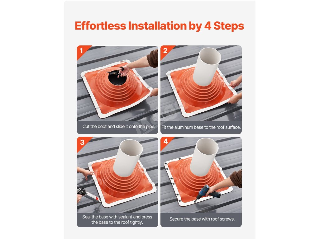 Kovová objímka na strešné potrubie je vyrobená so základňou z hliníkovej zliatiny s hrúbkou 0,6 mm, ktorá je vysoko flexibilná a zabezpečuje tesné priľnutie k vašej streche a potrubiu pre lepší tesniaci výkon!