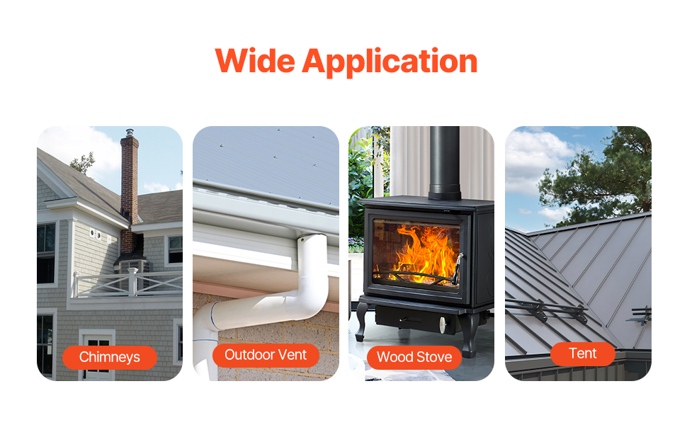 Díky vysoké přizpůsobivosti a dobrému utěsnění naší ohebné trubky odolné vůči vysokým teplotám lze střešní větrací trubku široce použít v komínech, výfukových otvorech, kamnech na dřevo, ventilačních otvorech, stanových trubkách atd.!
