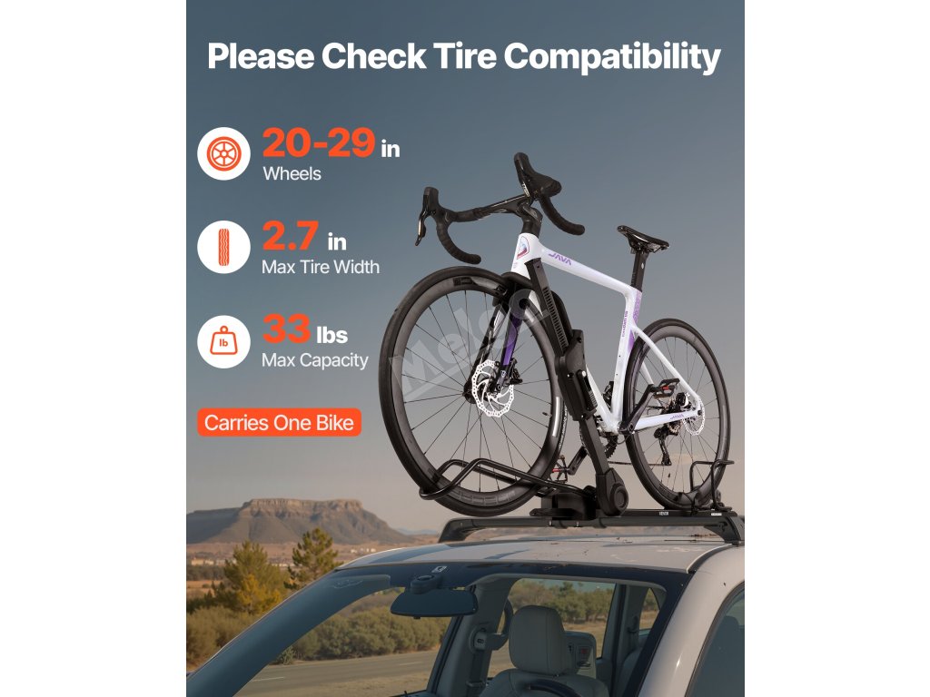 Podporuje velikosti kol od 20 do 29 palců a šířky pneumatik až do 2,7 palce. Kompatibilní s horskými, silničními, dětskými koly a koly s tlustými pneumatikami (v rámci omezení velikosti).