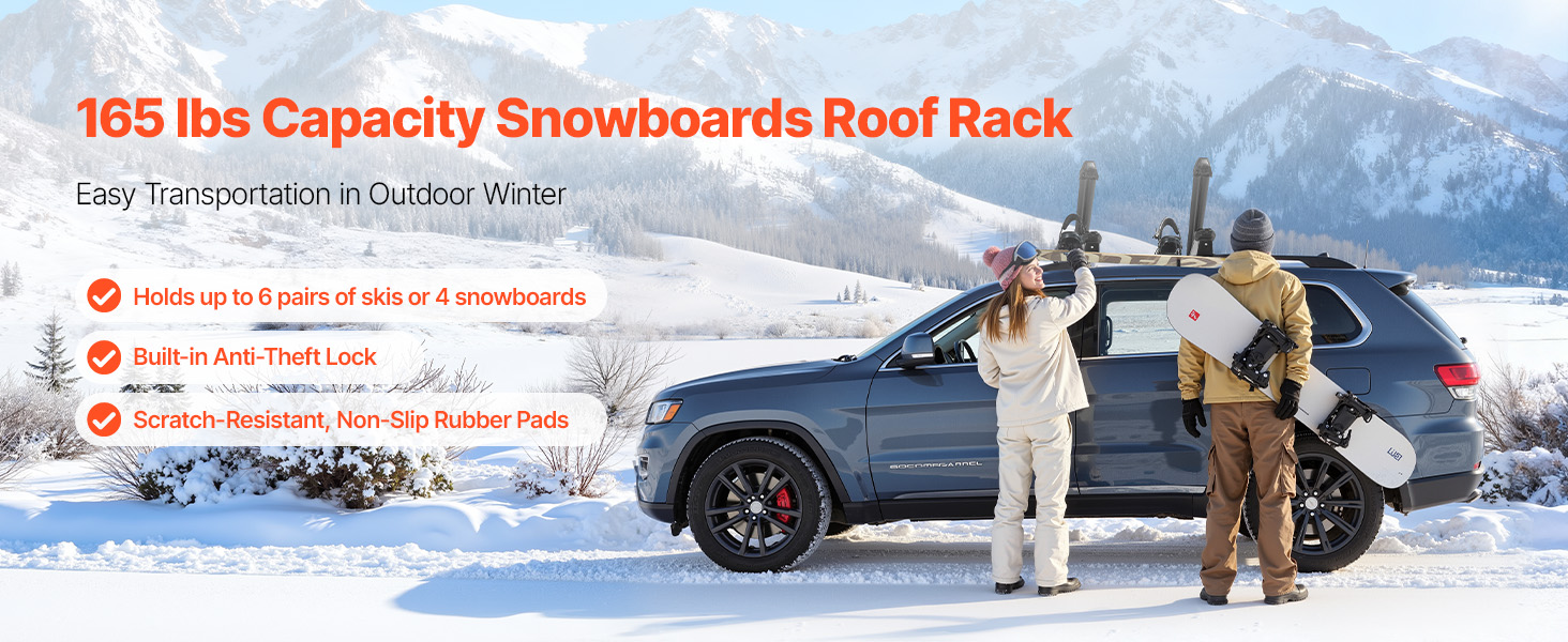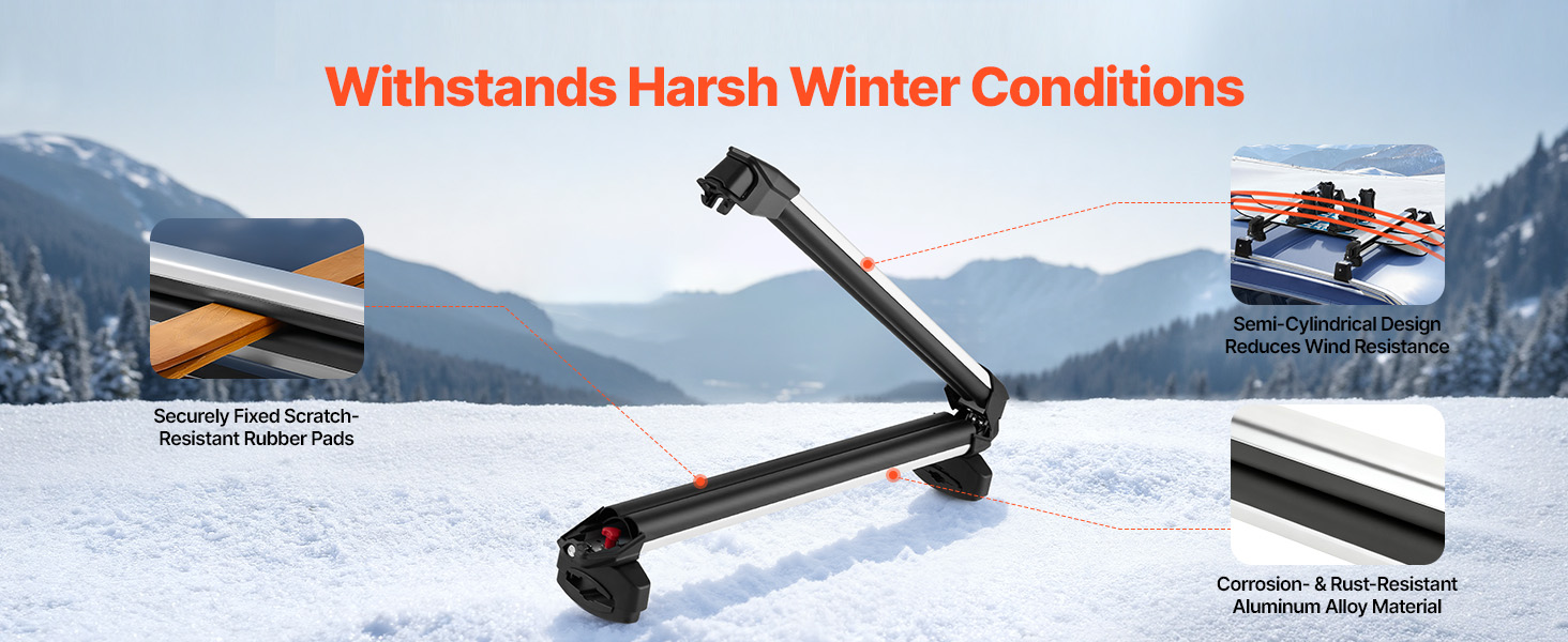 Tento nosič snowboardů je vyroben z hliníkové slitiny odolné proti korozi a rzi, takže vydrží i drsné zimní podmínky. Robustní gumové podložky proti poškrábání pevně drží lyže, odolávají poškození během přepravy a zajišťují bezpečné a pohodlné cestování.
