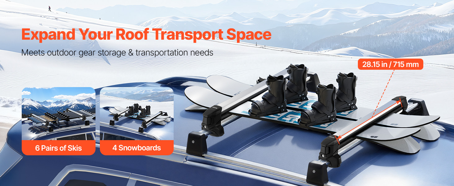 Náš střešní nosič lyží a snowboardů je vybaven zámkem proti krádeži pro bezpečnou a pohodlnou přepravu. Měkké gumové podložky odolávají poškrábání a udržují lyže pevně na místě. Poloviční válcová konstrukce snižuje odpor větru a hluk, zatímco odolný rám z hliníkové slitiny zajišťuje dlouhodobou spolehlivost.