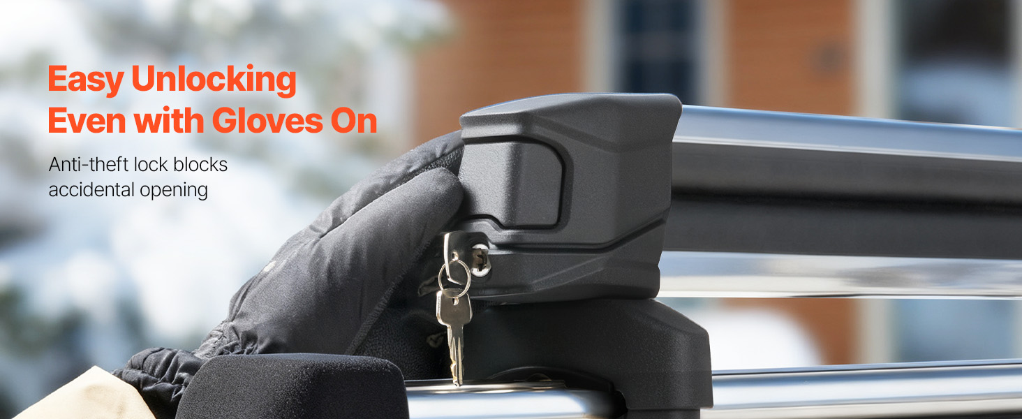 Náš nosič lyží je vybaven zámkem proti krádeži, který lze snadno zamknout nebo uvolnit i v rukavicích. Tato chytrá konstrukce umožňuje rychlé a efektivní ovládání během venkovních výletů, aniž byste si museli sundávat rukavice.