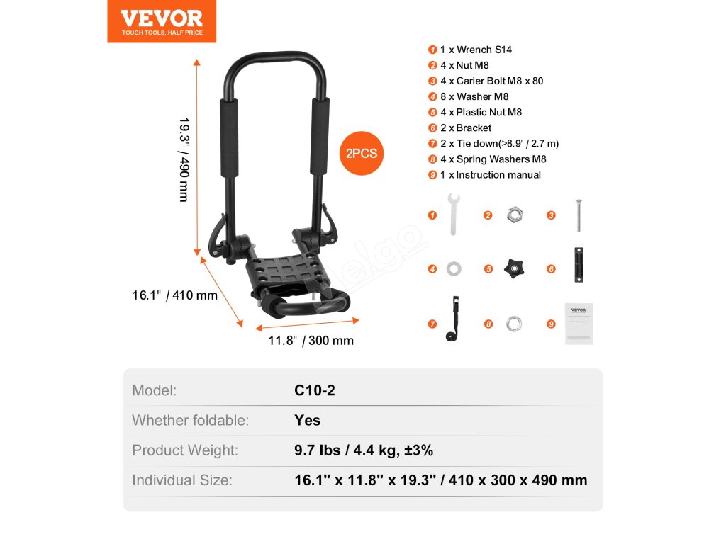 Tato sada střešních nosičů na kajak má speciální jednostranný design ve tvaru písmene J a 2 nosiče pohodlně pojmou 1 kajak.