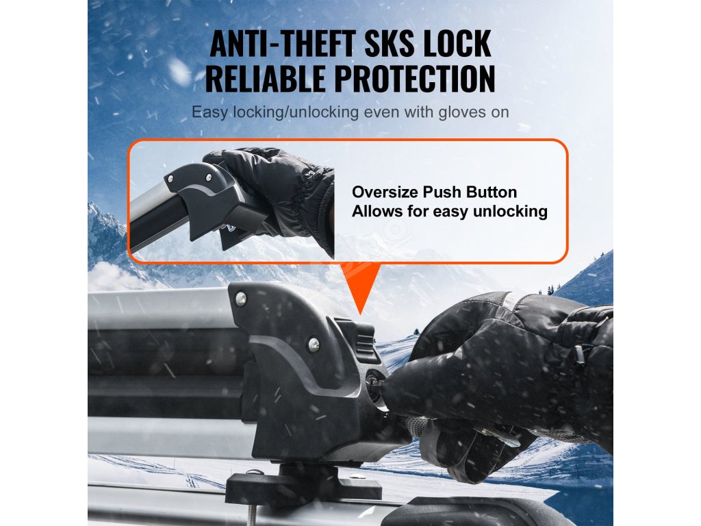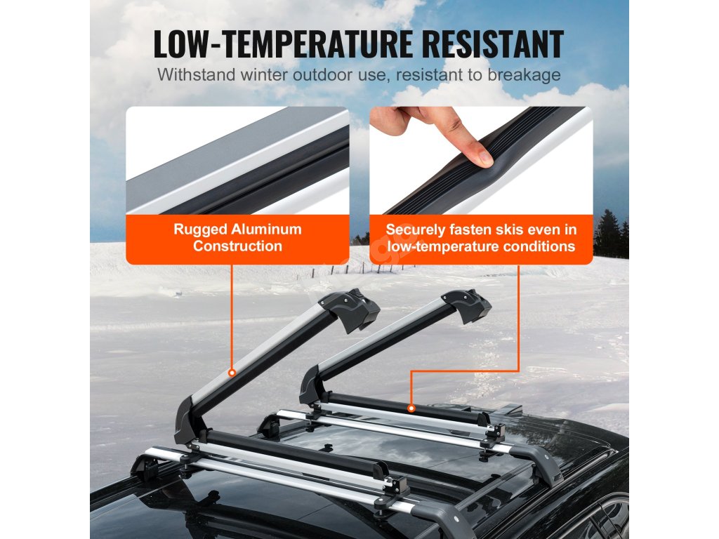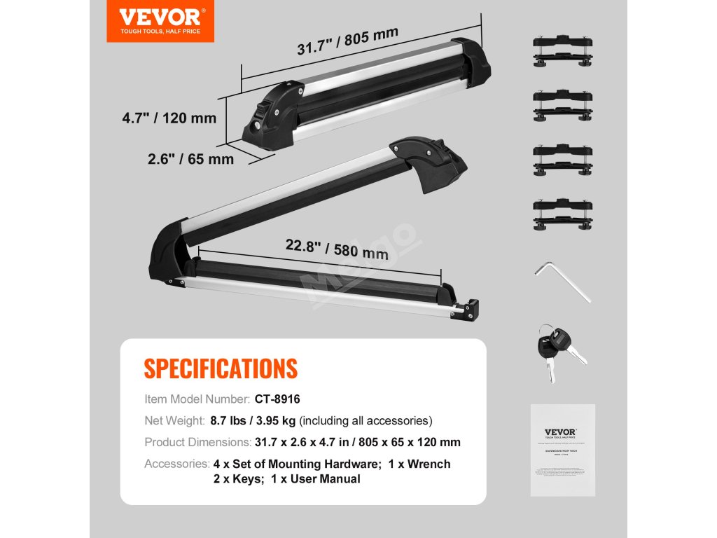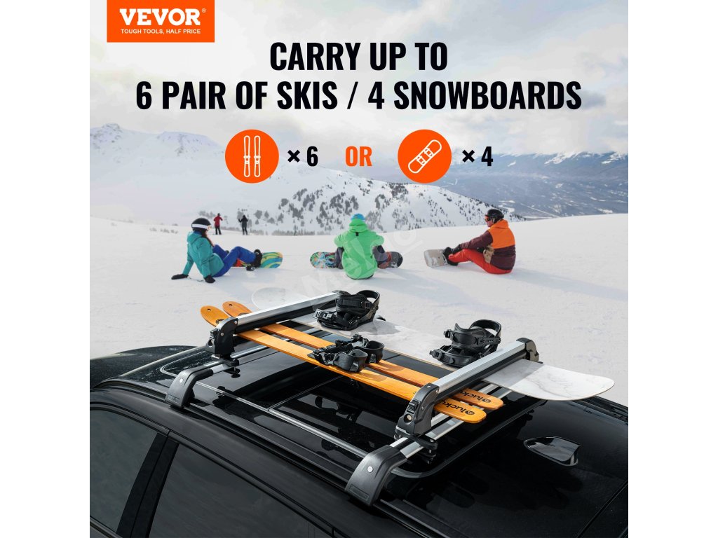 Vybavte se lyžařskou výbavou a vyrazte na cestu se střešním nosičem VEVOR na lyže a snowboardy. Je navržen tak, aby se do něj snadno vešlo až 6 párů lyží nebo 4 snowboardy, čímž maximalizuje prostor na střeše vašeho vozidla a zároveň zajišťuje bezpečnou přepravu. Je odolný a spolehlivý a představuje nepostradatelného společníka pro vaše outdoorová dobrodružství.