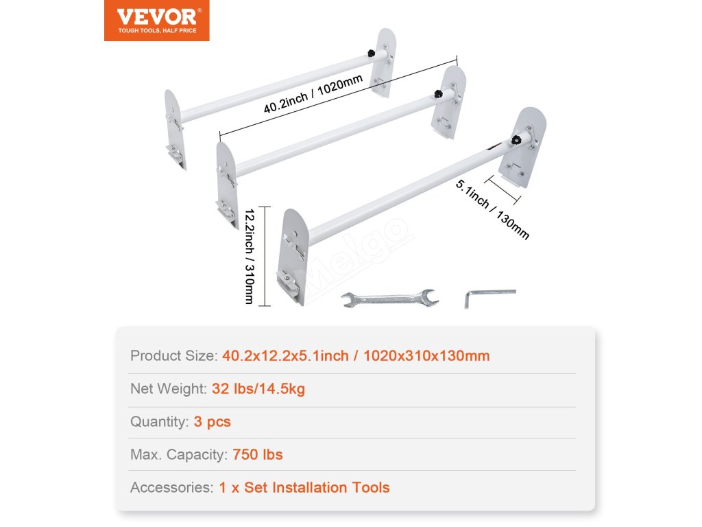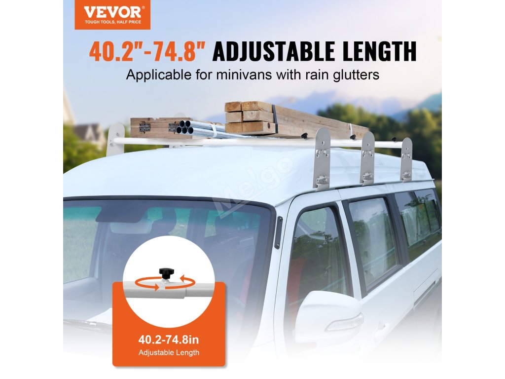 Žebříkové nosiče VEVOR pro dodávky mají odolné podpěry z legované oceli s nosností 750 kg. Ideální pro přepravu velkých předmětů, jako jsou žebříky, dřevo, kajaky a další. Povrch je pozinkovaný, aby odolával korozi a rzi.