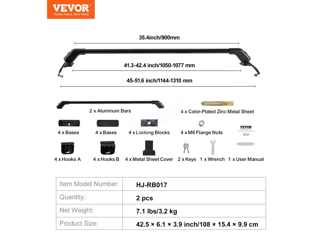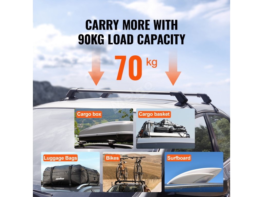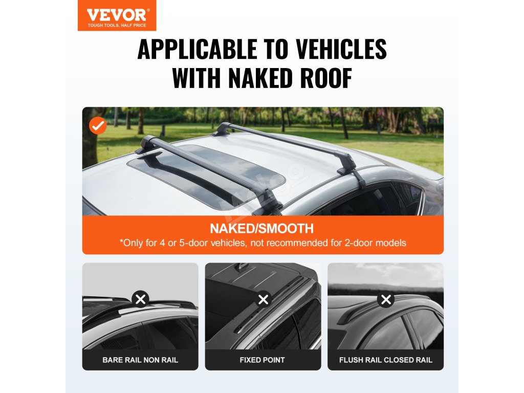 Naše příčníky střešního nosiče jsou dokonalým řešením pro 4 nebo 5dveřová vozidla s holou střechou (s dešťovým žlabem Světlá výška: 105-107,7 cm (41,3-42,4 palce) ; Světlá výška oken: 114,4-131 cm (45-51,6 palce). Snadno je nainstalujte a přepravujte zavazadla, jízdní kola, lyže a další vybavení bez dalších pronájmů.